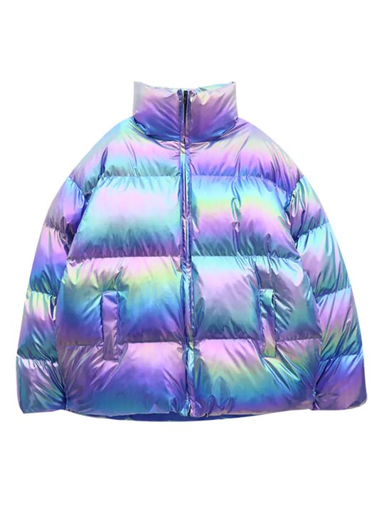 Thick Cotton Winter Jacket for Women - Stylish Rainbow Coat