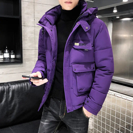 Men's Casual Stylish Solid Color Hooded Cotton Jacket