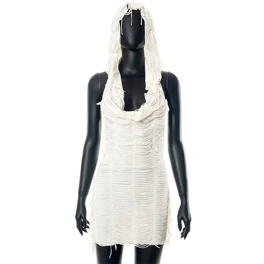 Solid Color Casual Sleeveless Hooded Tassel Dress